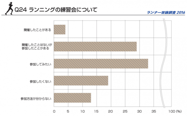 走ることは1人でもできますが、モチベーションやトレーニングに質などの面から、「仲間がほしい」「誰かと走りたい」「走り方を教わりたい」といった思いがあるのでしょう。このことは、次の調査結果からも見受けられます。