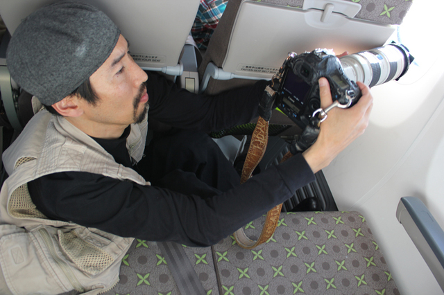 50組100名の当選者と共に、スペシャルゲストとして戦場カメラマン渡部陽一が搭乗し、金環日食の写真を撮影した。