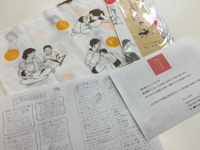 《熊本地震》支援チャリティーモーハウス手ぬぐいは売上の一部が被災者支援のための基金になるのだとか。支援物資に同封した「災害のときの母乳育児」はモーハウス平成28年熊本地震支援ページからもダウンロードできます