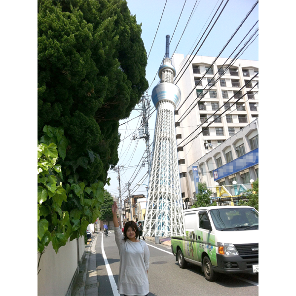 スカイツリーを日常の写真に合成すればあら不思議。あっという間にスカイツリーとの2ショットが完成。