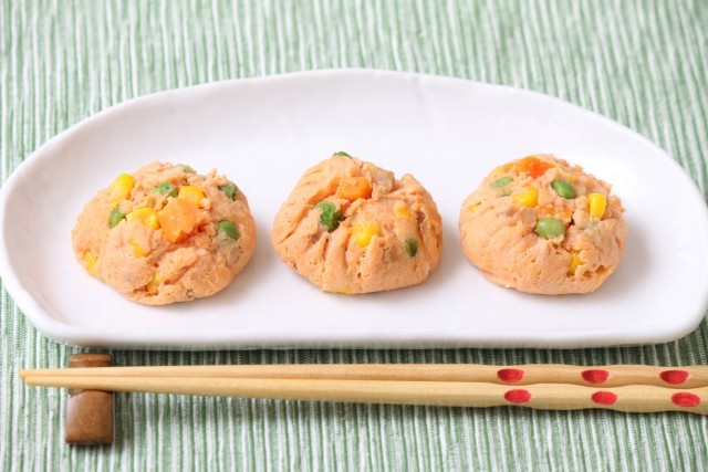 おやつ作りもとっても簡単。ホットケーキミックスに野菜ジュースやニンジンを混ぜるので栄養面もバッチリ。