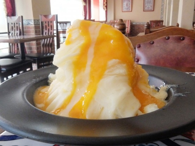 削り出した氷にジャムや蜂蜜、練乳を混ぜて練り上げるジェラートのようなかき氷。