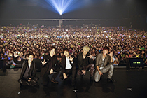 長身に映えるパープルのロングコートをたなびかせソンジェが登場すると、会場に集まった約5000人のMILKY WAY(超新星のファン/以下MW)から「ソンジェ、おかえり~」と大歓声が上がった。