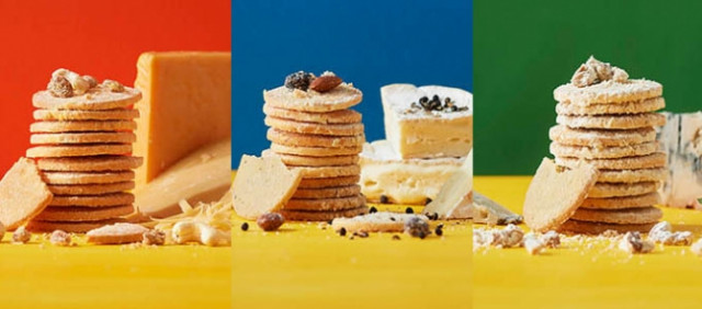 ゴーダチーズ&チェダーチーズ、マスカルポーネ&ゴーダチーズ、カマンベール&ブラックペッパーの3種をキュートな限定スリーブに詰め合わせてあります。