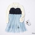 エルサをイメージしたワンピースは、ホワイトのカットソーに、透け感のあるアイスブルーのチュールをドッキング。