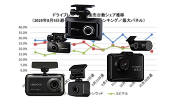 全国の家電量販店やECショップでPOSデータを集計する「BCNランキング」によると、10月のドライブレコーダーの販売台数は前年同月比で96.6%と微減だった。増税直前の駆け込みで195.5%と伸長した9月と比べると半減したが、反動でデジタル家電の各ジャンルが大きく落ち込む中、踏みとどまった。