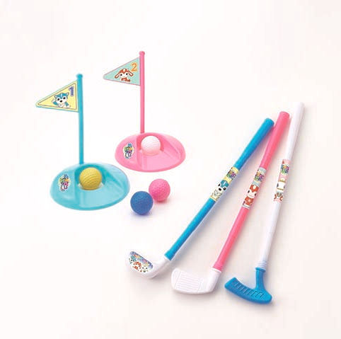 『ミニゴルフセット』は、約45cmのクラブ3本、カップ2個、ポール2本、ボール4個はいったセット。