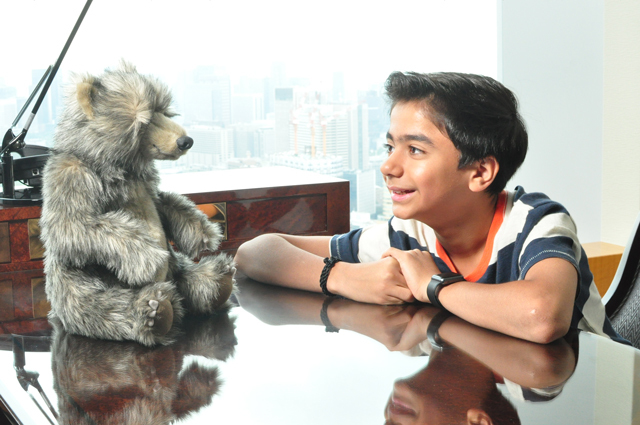 A3:クマのバルーと川で歌いながら遊ぶシーンかな? 発泡スチロールのかたまりに茶色いじゅうたんを乗せたものをバル ーに見立てて撮影したんだけど、ジョン・ ファブロー監督が頭の部分を実際に演じてくれたんだ(笑)。 完成した映画の中でも一番好きなシーンだし、 バルーは動物たちの中でも一番のお気に入りのキャラクターなんだ !