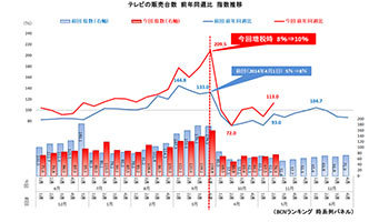 そんな中でも明るい材料があるとすれば、前回の14年4月の増税時より伸び率が一貫して上回って推移していることだろう。このほど出そろった家電量販各社の中間決算(4~9月)を見ても、地デジバブルや家電エコポイントの特需の反動減で長く低調だったテレビ市場に「底打ち感が見られるようになった」(ヤマダ電機)などの見方が増えている。今回の増税前の駆け込み需要では、4Kテレビや有機ELテレビなど、高単価商品が好調に売れたようだ。