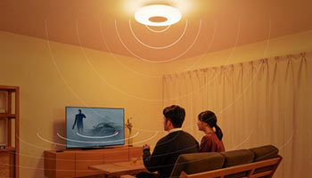 別売のスマートスピーカーを通じて、Amazon AlexaやGoogleアシスタントによる、家電の音声操作や音楽のストリーミング再生なども可能。LEDシーリングライトの適用畳数は10畳相当、色温度は電球色(2800K)~白色(6600K)。