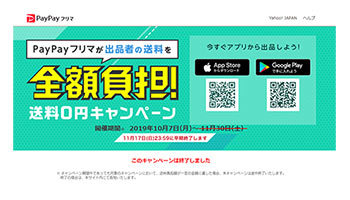 ヤフーが運営するフリマプリ「PayPayフリマ」は、10月7日のサービス開始から実施していた「PayPayフリマが出品者の送料を全額負担! 送料0円キャンペーン」を11月17日23:59に終了した。