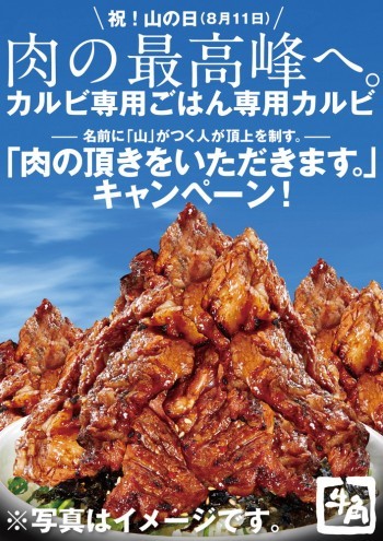 この「山の日」は、近くにいる“山本さん”や“山田さん”や“山下さん”を誘って、肉の山へと駆け登れ!!!