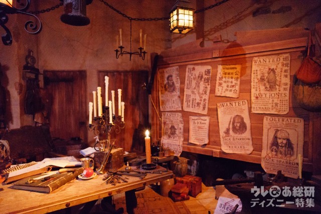 ホーンテッド・マンションのマダム・レオタ(水晶)の部屋のように、正面はジャック・スパロウの方向を見ながら、ライド自体は横向きに進む、といったことがボートライドで起こります。