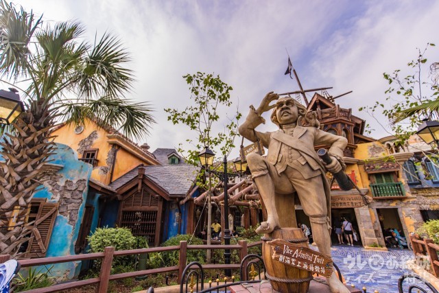 奥には「パイレーツ・オブ・カリビアン:バトル・フォー・ザ・サンクン・トレジャー」のアトラクションが通っています。