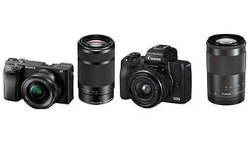 α6400 ダブルズームレンズキット ブラック(左)、EOS Kiss M ダブルズームキット ブラック(右)