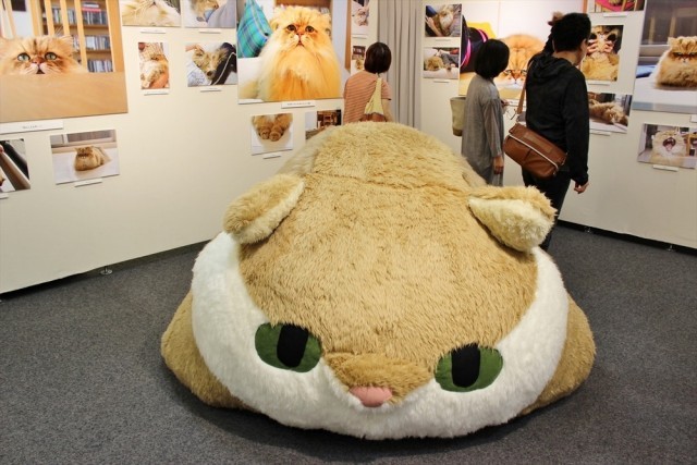 会場で抜群の存在感を示していたのが、しょんぼり顔の人気猫「ふーちゃん」の超巨大ぬいぐるみ。ぬいぐるみ作家の「RUBIA-ARGYI」とコラボした、大きな大きなぬいぐるみ。重さは約50キロあるとか。あまりの大きさに部屋から出せなくなるほどだったそう。