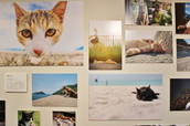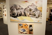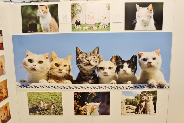 この会場だけでもおよそ350点が展示してあるとか。いつもスマホやパソコンで見ているお馴染みのネコたちですが、実際にプリントされたものを見ると、また印象が違いますね。