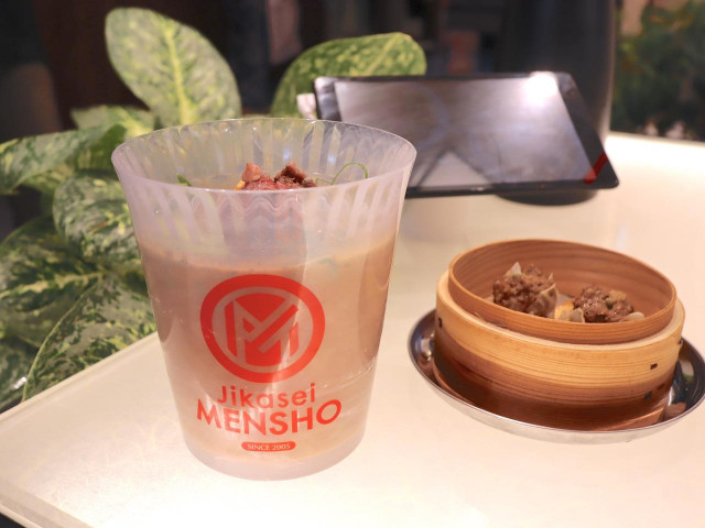 渋谷PARCO店のコンセプトはWAGYU×RAMEN。ラーメンを気軽に食べられるように、MENSHOオリジナルの縦型ラーメン器で提供されます。この容器はサンフランシスコの店舗で出しているのと同じなのだそう。