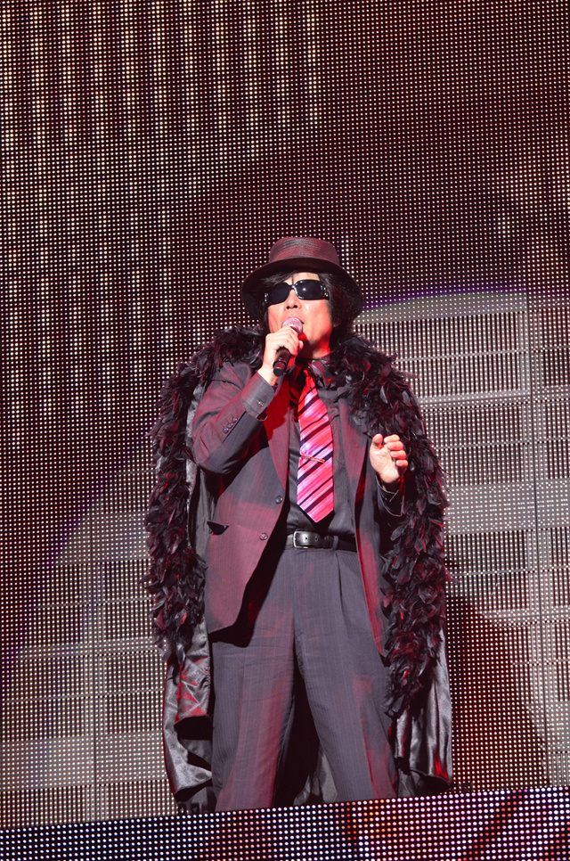 曲の中盤辺り、ステージに現れたのが…当ミルキィホームズやTCG「ヴァンガード」を手掛けるブシロードの木谷社長が、新日本プロレス開幕式に着ていたマントを翻し、堂々登場!