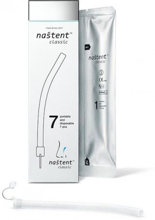 鼻から挿入するチューブ状の一般医療機器ナステント™ 。非常に柔らかい材料で作られており、小さな負担で症状を緩和できるように設計されていて、周りからみてもそれほど目立ちません。