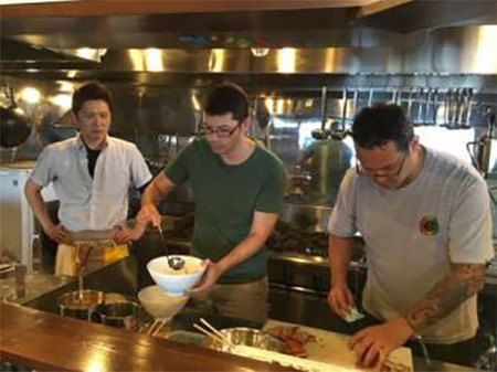 実店舗で実際にお客さんを入れ、販売までのオペレーションを学ぶことができる。カリキュラム最終日にはオリジナルレシピでのラーメン作りを実施。