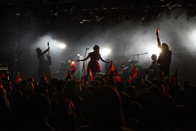 ステージが明かりに照らされると共に、客席からは無数の赤い旗が上がった。