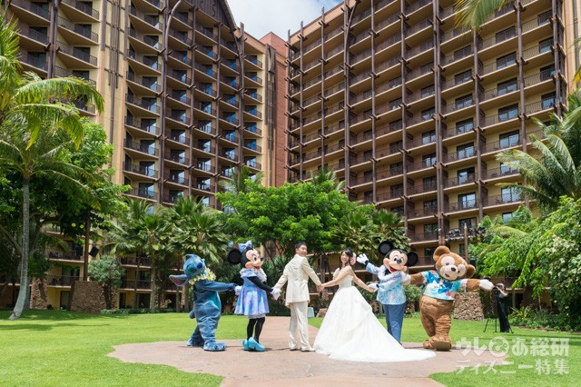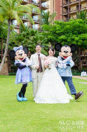 「アウラニ・ディズニー・リゾート & スパ コオリナ・ハワイ」へ休暇に来ている、ミッキーマウスたちが、新郎新婦ふたりだけのために、お祝いに駆けつけてくれました。