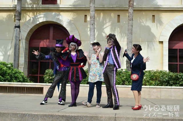 リクルーター2人と「ミスターV」、「ミススキャター」の合計4人のポーズで「ヴィランズ・ハッピーポーズ・ダンス」を繰り広げ、ゲストをヴィランズの世界へと誘惑します。