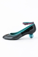 コラボパンプスは、それぞれのトレードカラーを基調にしたデザインとなっており、初音ミクモデルはブルーグリーンにブラックとグレー、鏡音リン・鏡音レンのデザインはイエローにホワイトとブラック、巡音ルカモデルはエンジ色にブラックを合わせたカラーリング。