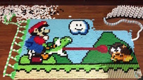 約1万5000本の綿棒にマジックや絵具で色を付け、積み重ねてはボンドで接着していくという地道な作業を繰り替えて完成したファンアートは、まるでゲーム画面をそのまま現実世界に引っ張りだしたようなそれっぽさ。本来のドット絵と綿棒の頭の相性も良い感じですね。