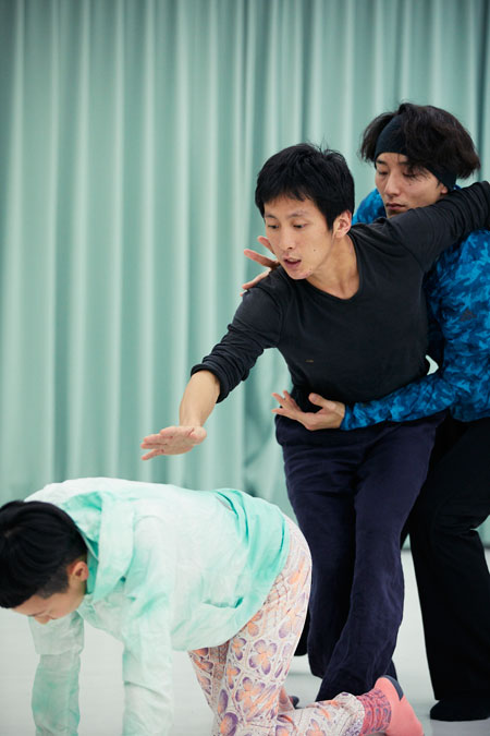芝居、コンテンポラリーダンス、音楽が融合するという本作。ダンサーとしての経験も豊富な大貫は「良い意味で、インバルの指示が雑なんです(笑)。“こういうイメージで。OK、とりあえずやってみよう!”みたいな(笑)。つまり、振付をするわけじゃないんですね。でもだから僕らは広い場所で遊べるし試せる。そこでポロッと生まれた面白いものをサッと掴んで、それを使って少しずつ具体的にしていくのが楽しい」とインバルならではのつくり方を堪能している様子。松岡も「ダンスはずっとやっているのですが、これまでは発揮できる場があまりなかった。今回、新境地にいけると思っています」と意気込む。