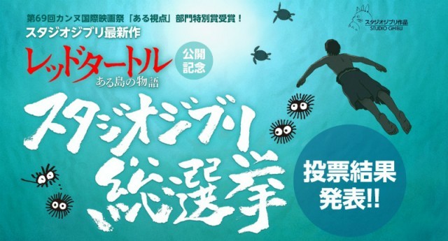 スタジオジブリ最新作である『レッドタートル ある島の物語』公開を記念して、歴代ジブリ作品を劇場でリバイバル上映する1本を選ぶ「スタジオジブリ総選挙」が行われ、その最終結果が発表されました。