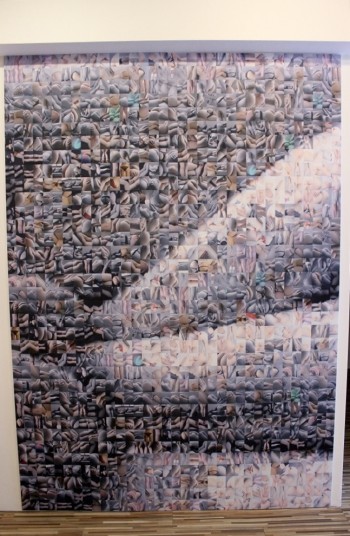 無数のおしりとひかがみが集まって作られたモザイクアートも展示されていた。離れて見ると、巨大なひかがみが現れる。