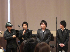 まずはDEENの3人から挨拶。「ワタクシどちらかというとそちらの席でお酒をたしなみたいところもありますが(笑)今日はみなさんと楽しんでいきたいと思います」と、さっそく笑いを取るキーボードの山根公路さん、さすがです。