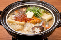 牡蠣とあん肝と白子といった海の三大クリーム系美味素材が大集結!味噌だしのスープに溶け込んだ濃厚スープは格別です。〆の雑炊で最後までしっかり味わいたくなるお鍋です。