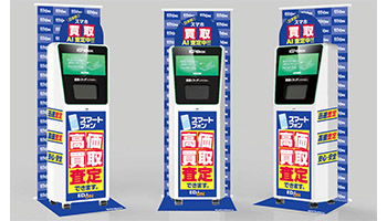 店内に専用端末を設置。ユーザーが画面の指示に従って専用端末にスマホを接続すると、メーカーや型番などを判定する。また、スマホを撮影した写真からAI技術で傷やへこみなどを確認して自動で査定する。査定にかかる時間は最短3分。