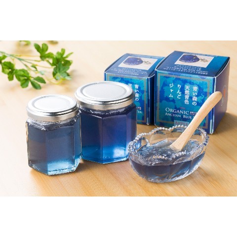 「青い森の天然青色りんごジャム」は、まるで目の前に美しい海があるのではないかと思ってしまうほど、綺麗な青色が特徴のジャムです。