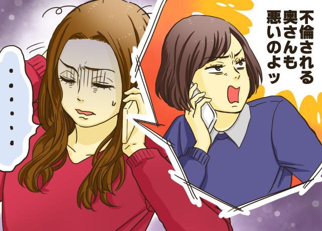夜など何時間も話されてしんどいときもあったけど、一番苦痛だったのが、『不倫される奥さんも悪いのよ』と彼女が言い出したとき。