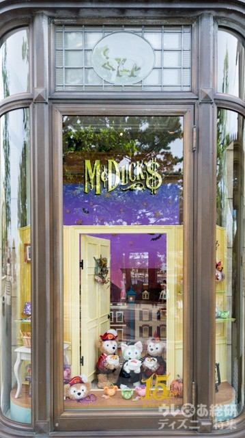 ショーウインドウでは、ハロウィーンのイラストのダッフィー達が、カワイく再現されています。