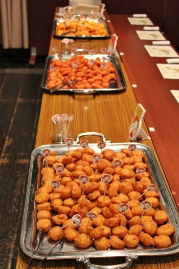 会場に用意されたのは定番の「レギュラー」「チーズ」「レッド」3種類のほか、ご当地からあげクン12種類。その数、3,000個。