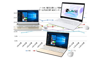 全国の家電量販店やECショップでPOSデータを集計する「BCNランキング」によると、11月におけるノートPCの販売台数前年比は117.1%と2ケタ増を記録した。増税直後の10月は85.5%と前年を大きく割ったが、Windows 7サポート終了が直前に迫ったのを受け、1カ月で即回復。メーカー各社も大きく販売台数を伸ばしている。