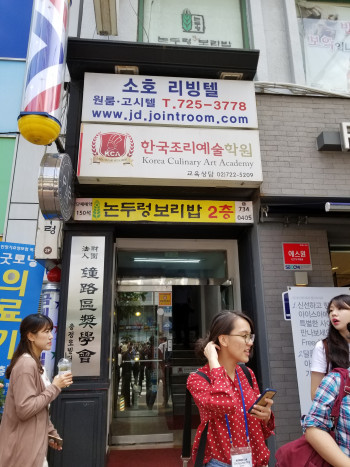 『ノンドゥロン・チャルポリパプ』の入口。目立たないが、最近、写真映えスポットして注目されている敦義門博物館村の向かいに位置している