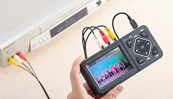 デジタル化した映像は、3種のメディアに保存することができ、SDカード(128GBまで)、USBメモリ(128GBまで)、HDD(2TBまでのセルフパワータイプ)に対応している。便利な録画機能も付いており、録画停止タイマー機能やスケジュール録画機能によって用途に合わせて利用することができる。サイズが約160×D73.5×H25mm(突起物除く)、重さが160g。