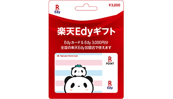 楽天Edyギフトカードは、パンダデザインの「Edy-楽天ポイントカード」に3000円分のEdyが付いている。販売店舗で購入の上、iPhone専用「Edyカード用楽天Edyアプリ」や、ファミリーマート店頭に設置されている専用端末「Famiポート」などの受け取り方法で、Edyギフトを受け取ることでチャージされる。