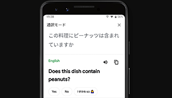 通訳モードを使うには、例えば「OK Google, 英語を通訳して」などと話しかけるだけ。スマホ上に会話の翻訳結果を表示するほか、音声でも聞くことができる。ケースに応じて、Googleアシスタントがスマートリプライ機能で返答の候補を表示する場合もある。ワンタップで素早く返答ができるため、会話をスムーズにサポートする。キーボード入力や話す言語を手動で選択することも可能だ。