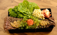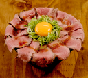 関西では「トウガラシ」、関東では「トンビ」と呼ばれる赤身を使ったローストビーフを、ふんだんに盛り付けた一品。一頭から2kgしかとれない希少部位とのことで、赤身好きの方に一度は食べてもらいたいメニューです。