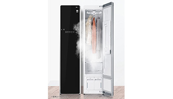 LG stylerは、衣類や小物についた臭いやしわ、ほこり、花粉、ダニなどを自宅で簡単にケアできる衣類リフレッシュ機。水を加熱して発生したスチームを、独自の「TrueSteamテクノロジー」によって循環させ、庫内を一定の温度に保ち、ニオイ成分の粒子を取り除く。さらに、ハンガーラックの振動とともに、衣類についたほこりや花粉などをふるい落とし、しわを伸ばす。