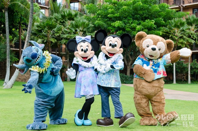 アウラニ「ディズニー・フェアリーテール・ウエディング」で呼ぶことの出来るキャラクター (左から)スティッチ、ミニー、ミッキー、ダッフィー