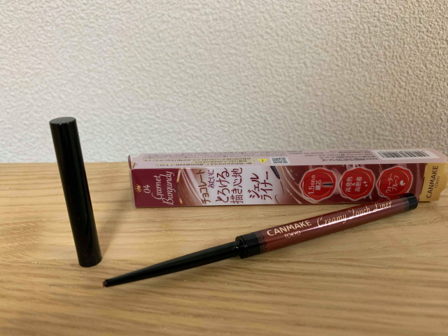 新色かつ、ロフト限定カラーのガーネットバーガンディは、絶妙な赤みを出してくれるので、赤みのブラウンのアイライナーの中では、間違いなく当たりのアイライナーです。