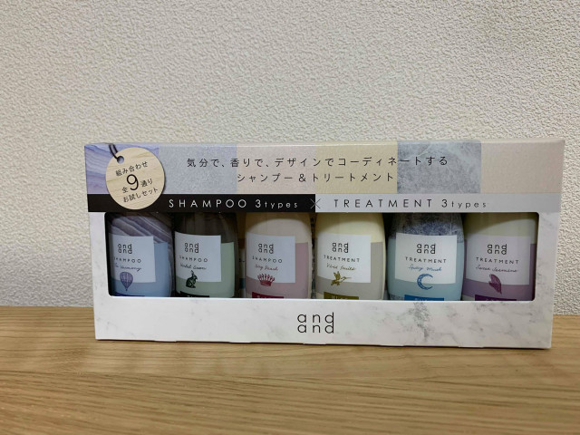 あともうひとつ『and and シャンプー&トリートメント 全9通りのお試しセット』こちらもおすすめです。